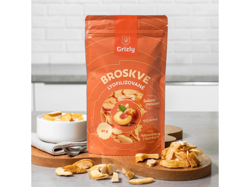 Mrazem sušené broskve se vyplatí zařadit do svého jídelníčku. Jsou přímo ideální na přípravu svačiny, jelikož vyvolají pocit nasycení a přispějí k normálnímu trávení. Jestli vás baví zkoušet nové chutě, využijte lyo broskve při tvorbě domácích moučníků, přidejte je do granoly nebo pestrého smoothie. Čerstvou a křupavou chuť si díky tomu, že jsou baleny ve znovuuzavíratelném obalu, můžete vychutnat až do posledního sousta.